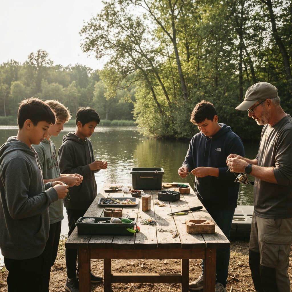 Monthly workshops covering gear maintenance, lure making, knot tying, and advanced fishing techniques.